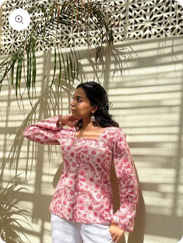 Women's Printed Straight Sleeveless Square Neck Flared Short Kurti for Women & Girls – Pink & White Designer Kurti